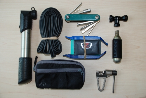 Keep emergency items in your bag at all times. I have a pump, tube, multi-tool and emergency lights in my commuting bag.